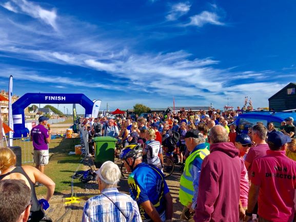 The 15-mile bike was from Aldeburgh to Thorpeness and to Aldringham and back to Aldeburgh twice. I must say I thought I had finished when I got back to Aldeburgh for the first time…but I was told I needed to do the lap again! The 15-miles took me in total 1 hour and 7 minutes, which I was pretty pleased with. Unfortunately it wasn’t enough to keep up with the top athletes but it’s all about taking part.